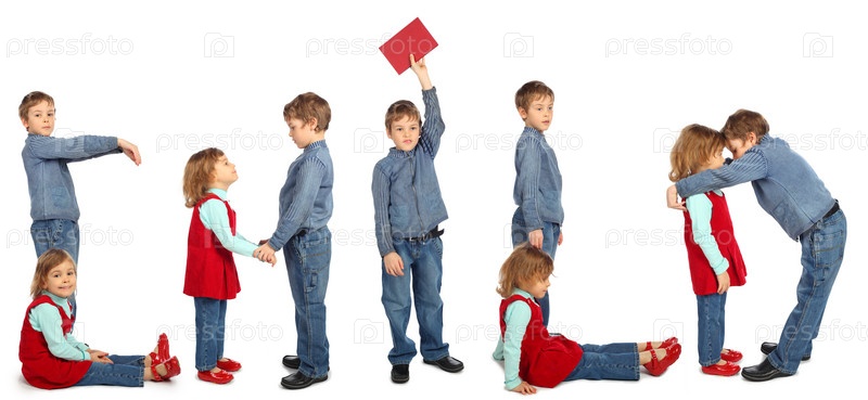 Мальчик и девочка представляют слово РЕБЕНОК