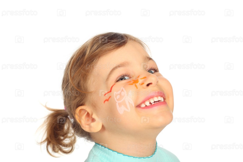 Счастливая девочка с рисунком на лице