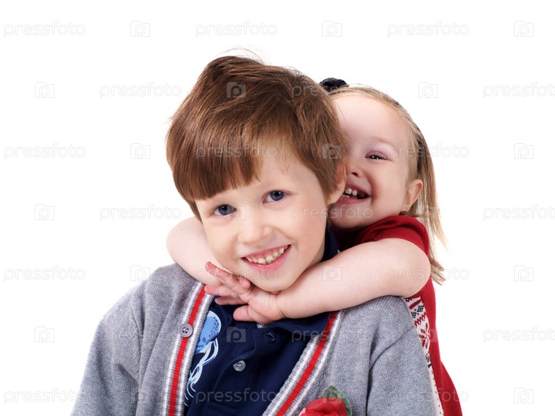 Сестренка обнимает своего брата