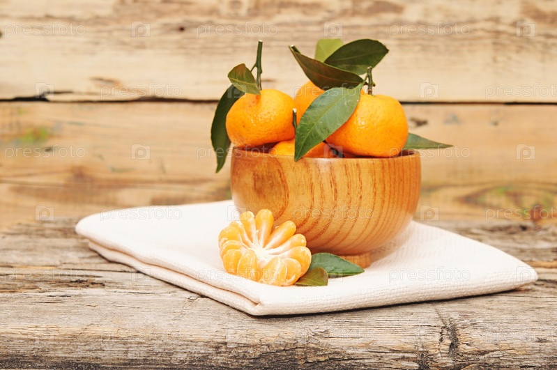 Мандарины на деревянном столе