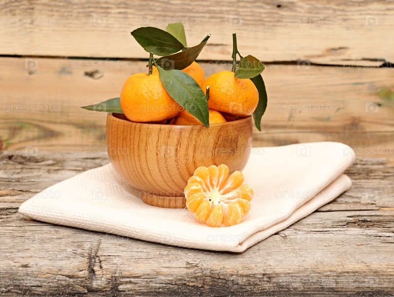 Мандарины на деревянном столе