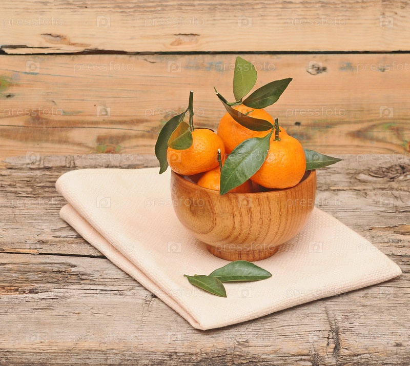 Мандарины на деревянном столе