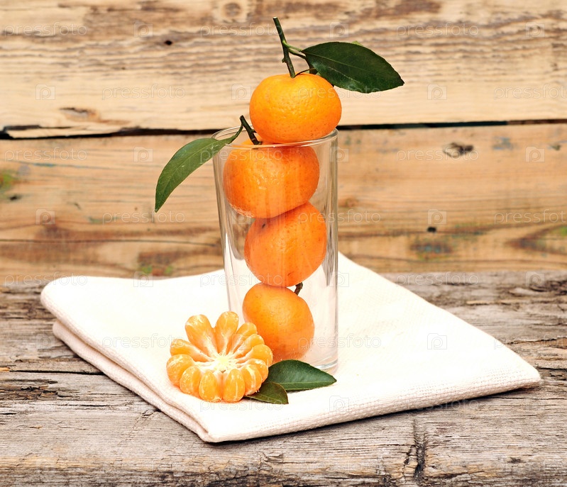 Мандарины на деревянном столе