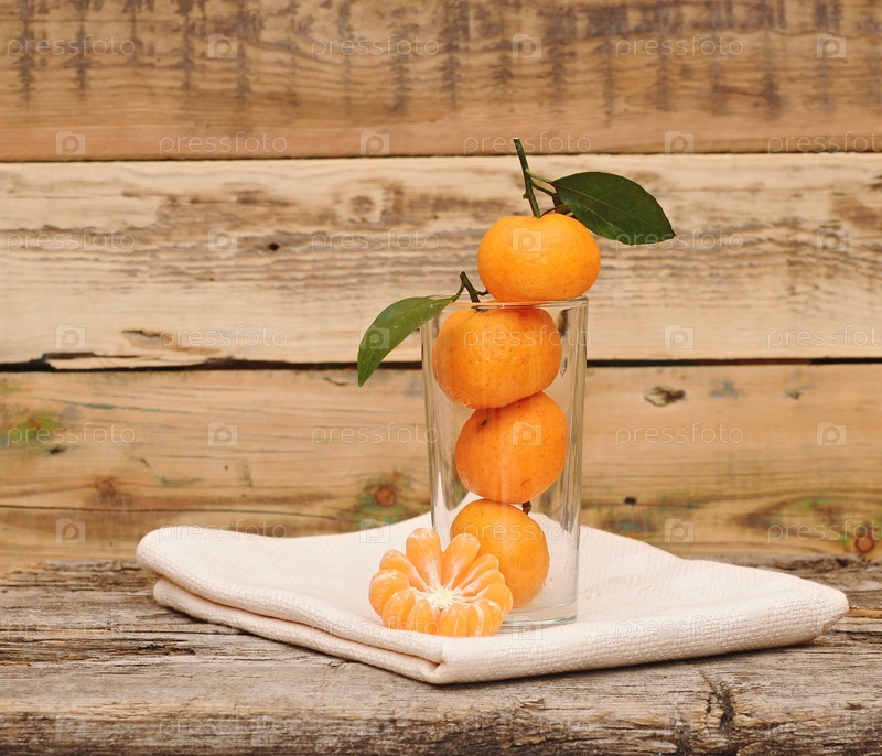 Мандарины на деревянном столе