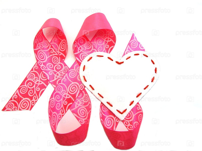 Белое сердце и розовая лента на белом фоне