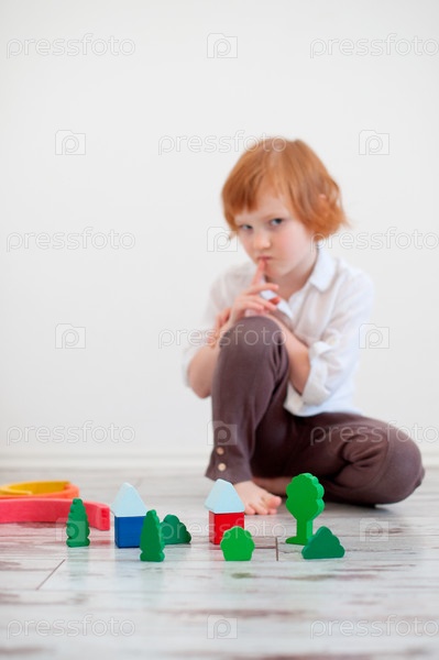 Девочка построила город из кубиков