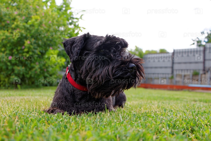 Маленькая черная собака на траве