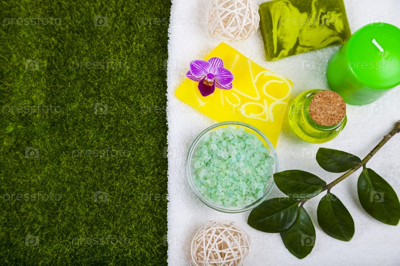 Спа-продукты на зеленой траве