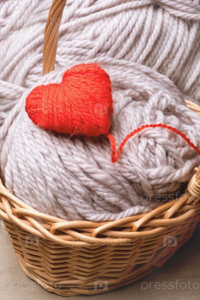 Красное сердце из ниток