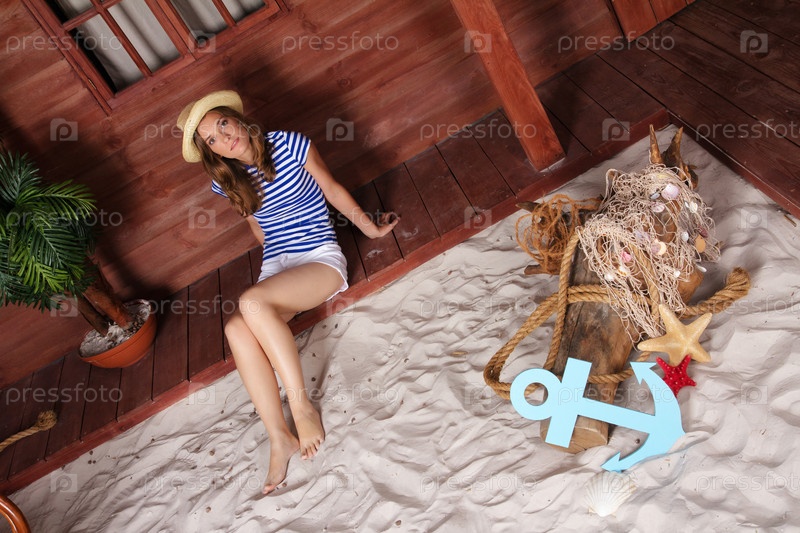 Молодая блондинка на песке