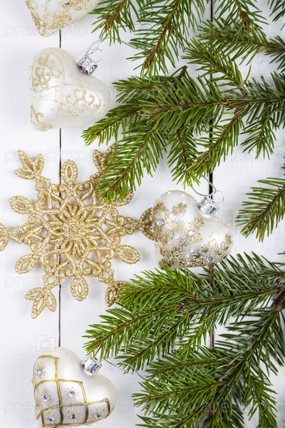 Новогодние шары и еловые ветки