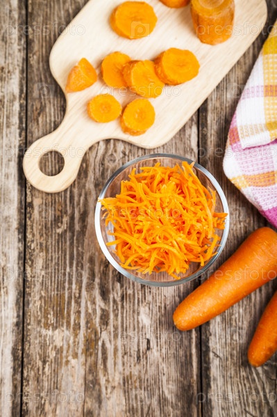 Натертая морковь в миске