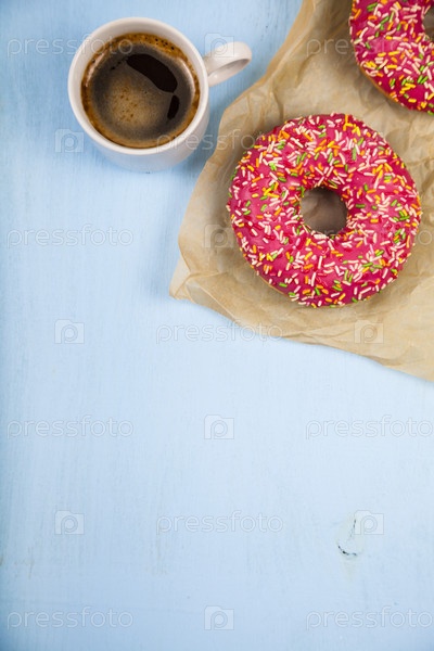 Пончики и чашка кофе