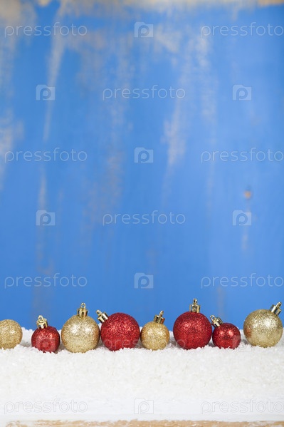 Красные и золотые рождественские шары на снегу