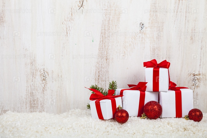 Подарки с красными бантами на снегу