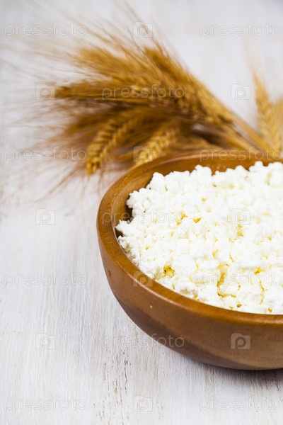Творог в деревянной миске