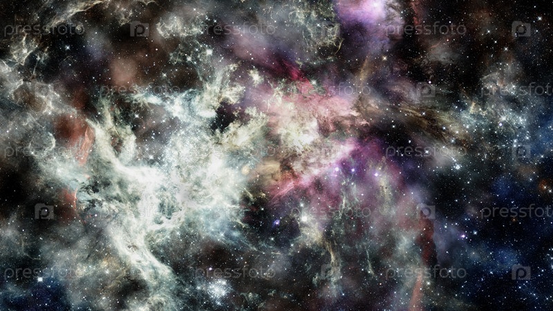 Красивая туманность, звезды и галактики