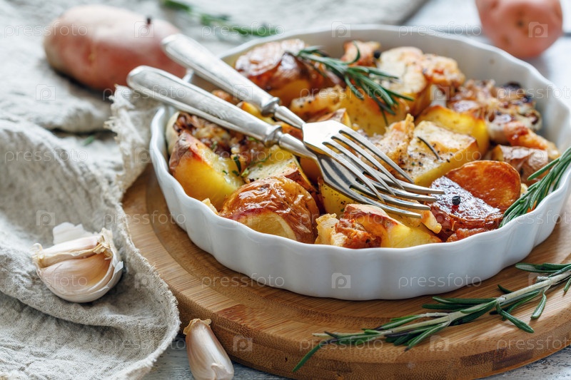 Картофель, запеченный с беконом и розмарином