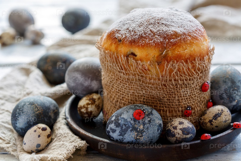 Традиционный Пасхальный кулич и красочные яйца