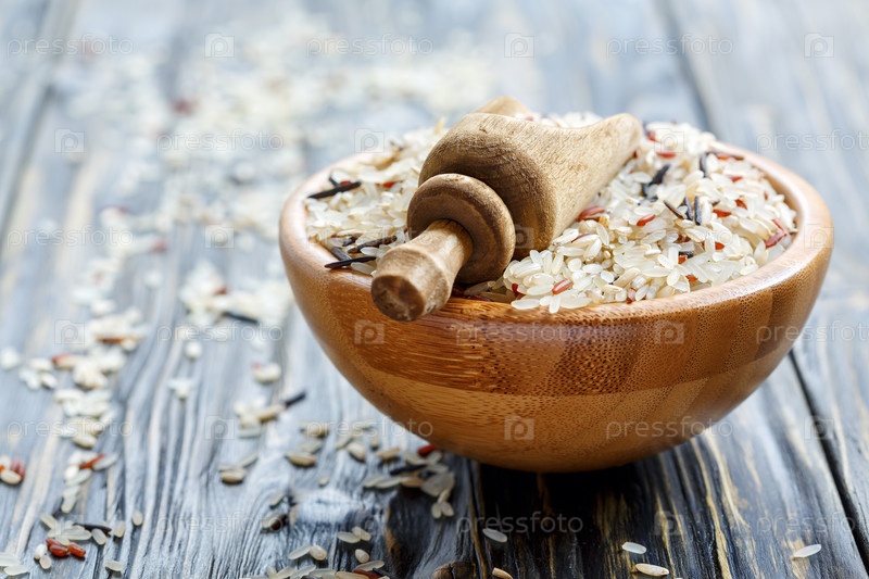 Ковш в миске со смесью четырех типов риса