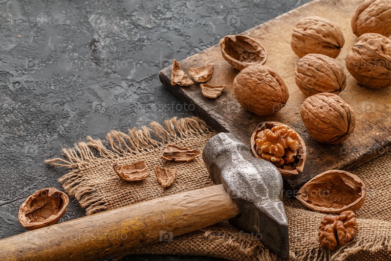 Грецкие орехи на разделочной доске
