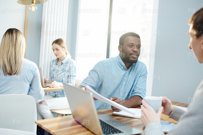Мужчины обсуждают документы