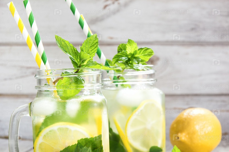 Летний освежающий напиток с огурцом, лимоном, мятой и льдом