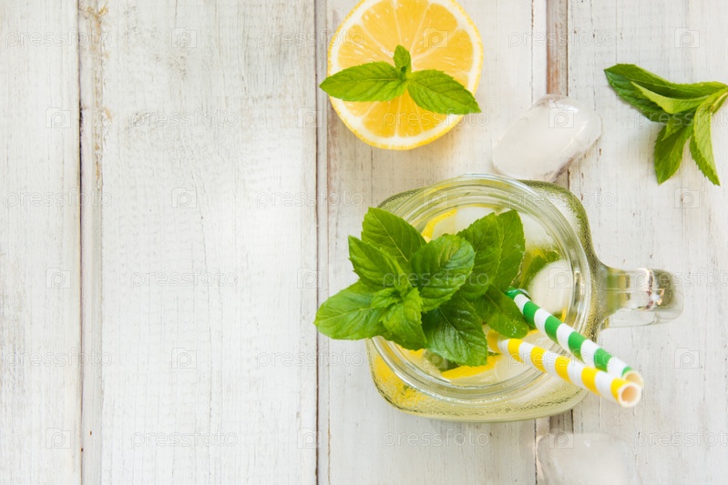 Летний освежающий коктейль с лимоном, мятой и льдом