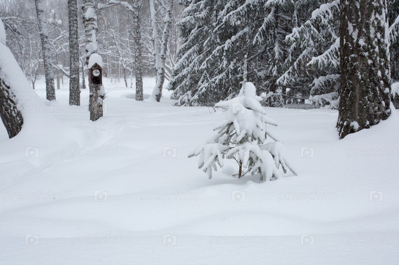 Скворечник в зимнем лесу