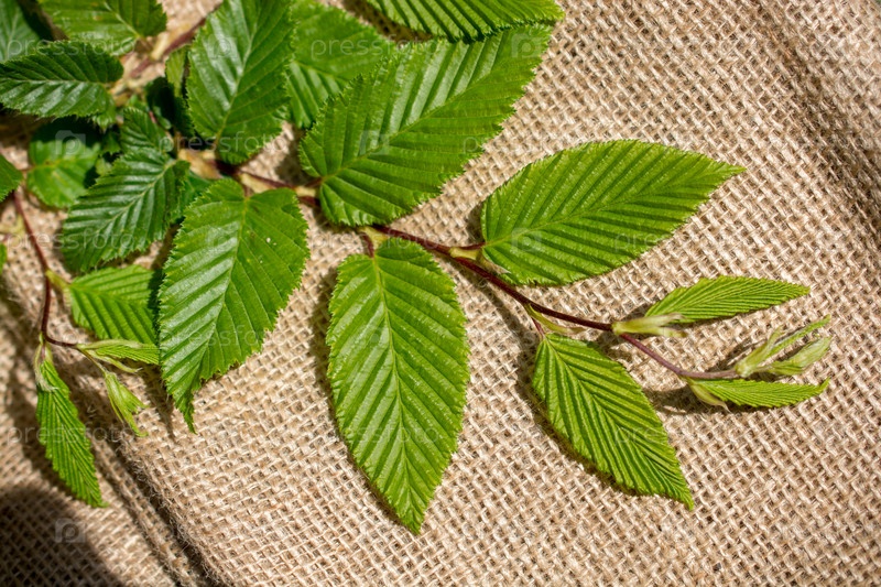 Зеленые листья на льняном холсте