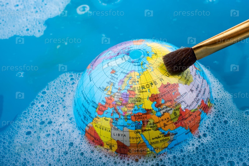Кисточка и глобус в воде