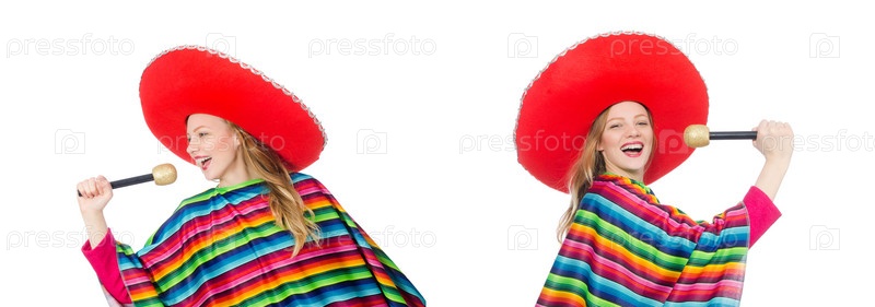 Красивая девушка в мексиканском пончо