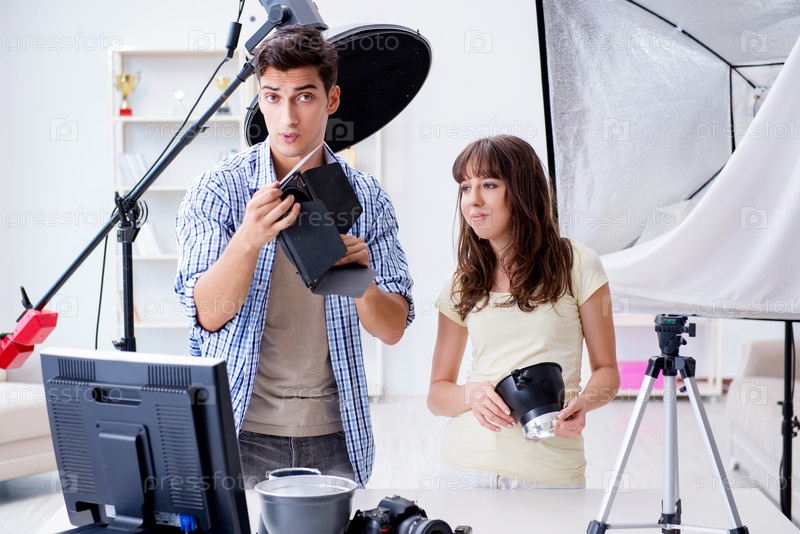 Молодой фотограф, работающий в фотостудии