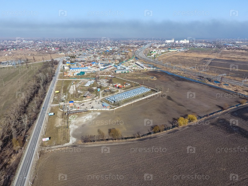 Вид сверху небольшой нефтебазы. Хранение горюче-смазочных материалов