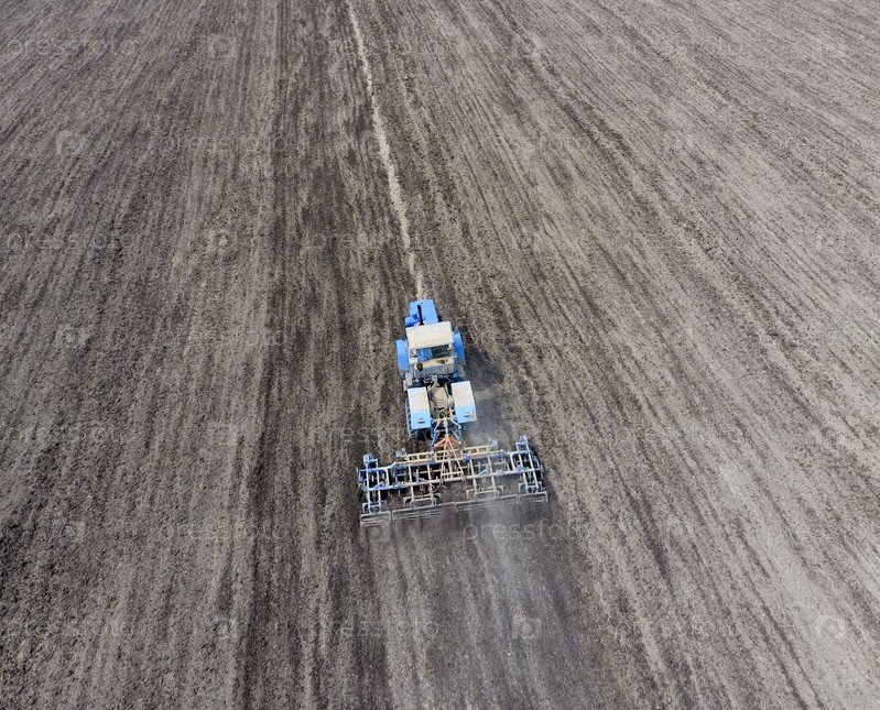 Трактор пашет поле