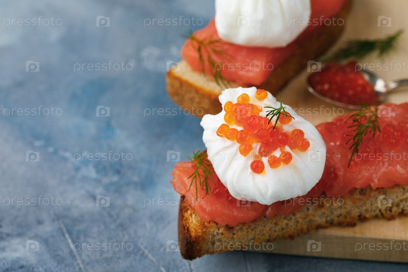 Бутерброд с яйцом - пашот, икрой и красной рыбой