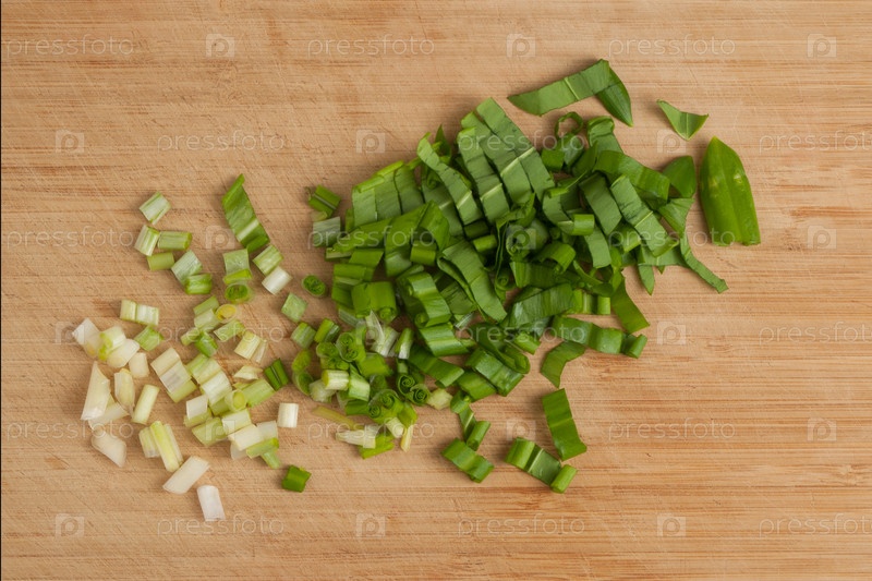 Нарезанные листья черемши на разделочной доске
