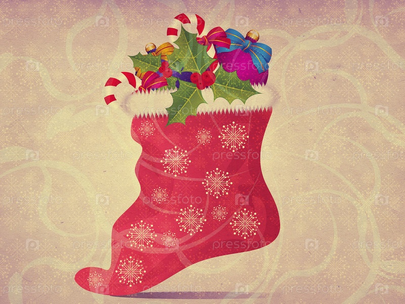 Винтажный фон с рождественским носком