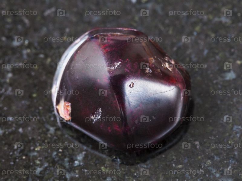 Полированный красный гранат камень на темном фоне