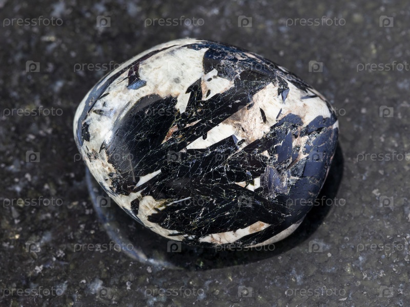Эгирин в полированном микроклине на темном