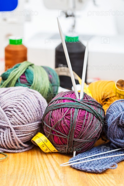 Вязальные и швейные материалы на столе