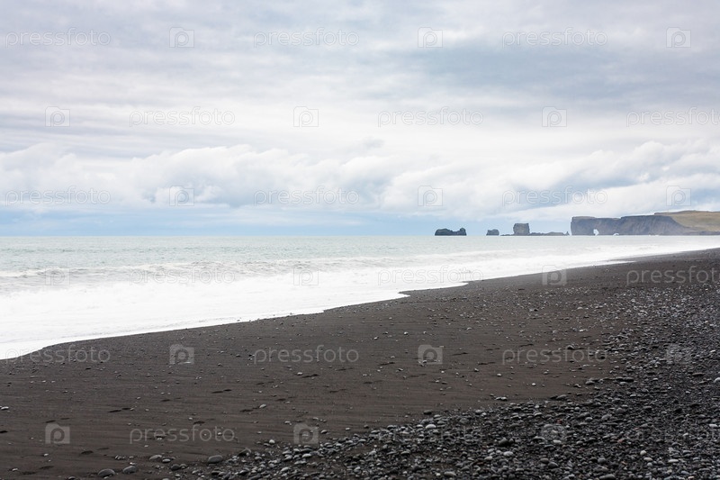Пляж Рейнсфьяра и вид Дирхолей