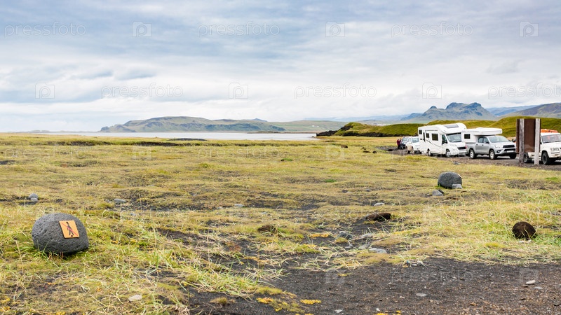 Автомобили на побережье в районе Рейнсфьяра