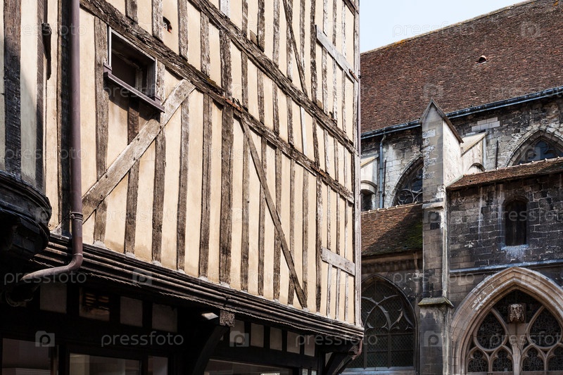 Фахверковые дома и стены церкви в Труа