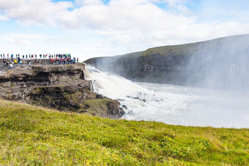 Туристы на смотровой площадке возле водопада