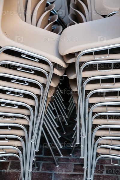 Многоярусные пластиковые стулья в кафе