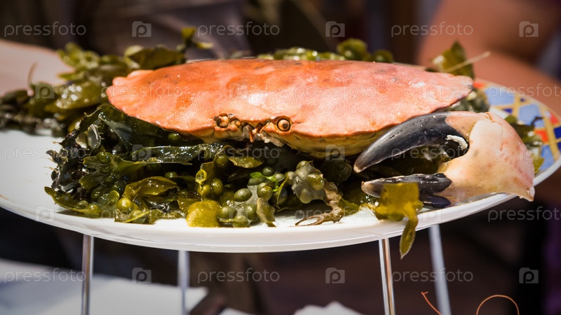 Атлантический краб на тарелке в ресторане морепродуктов