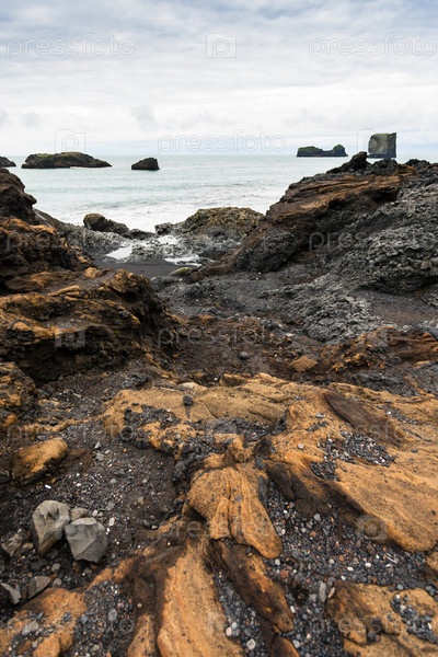 Атлантический океан и скалистый берег в Исландии
