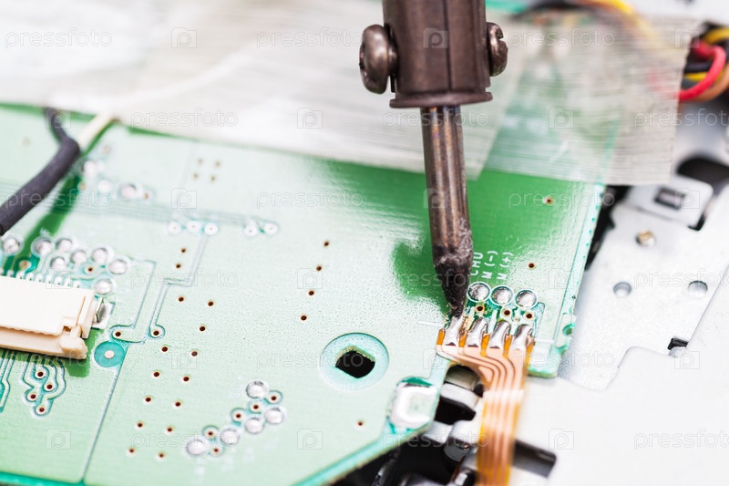 Ремонт платы с паяльником