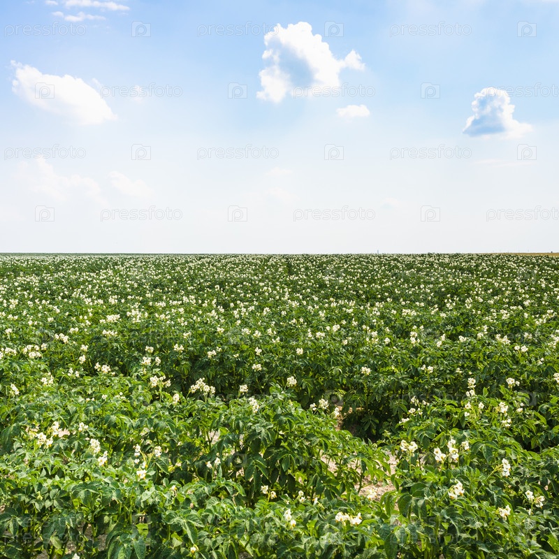 Зеленое поле картофеля во Франции